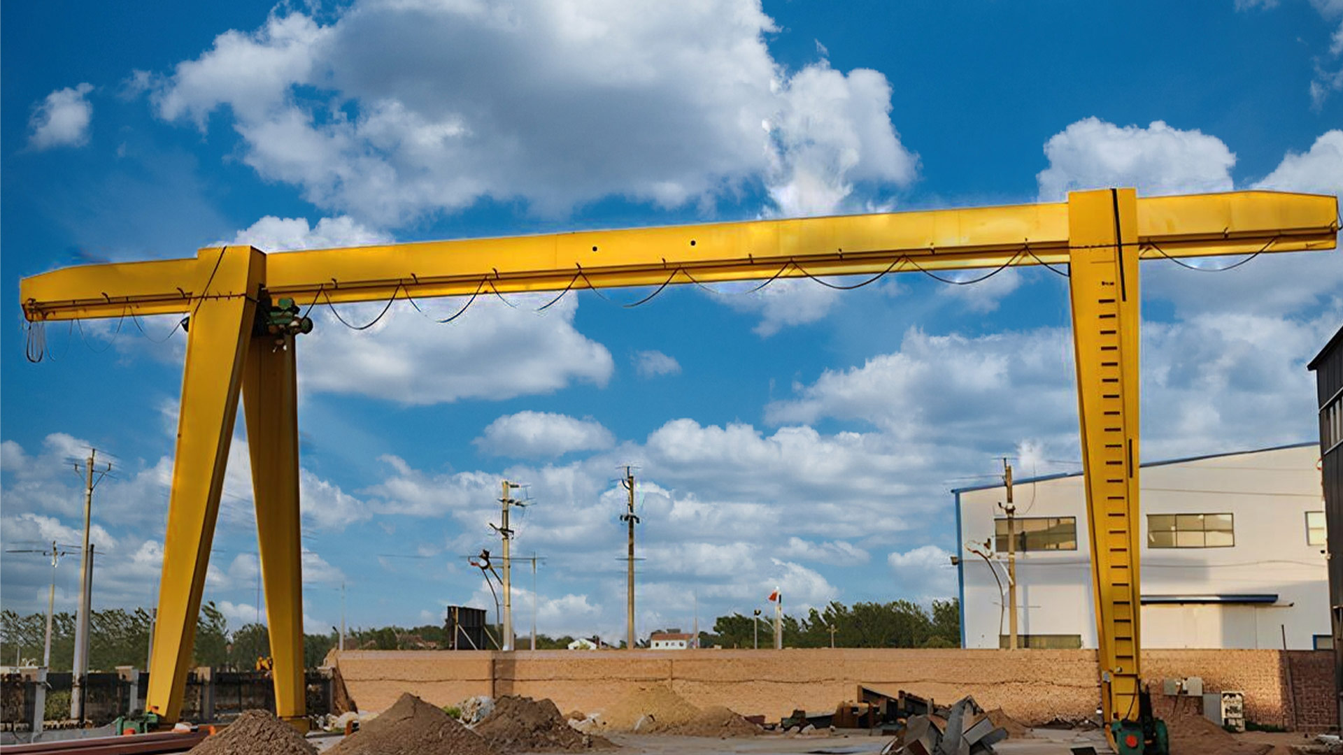 龙门架为箱形结构。。。。。箱形成型,,,,,,,,制作利便,,,,,,,,桁架式框架轻质,,,,,,,,抗风能力强。。。。。自重轻,,,,,,,,结构简朴,,,,,,,,装置维护利便,,,,,,,,适用于厂矿、货场、客栈等一样平常搬运的中小起重户外作业场合。。。。。榨取在有易燃、易爆、侵蚀性气体的情形中作业。。。。。